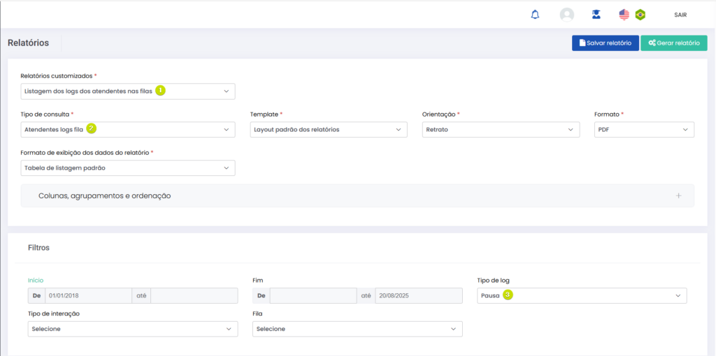 Versão 2.109.36 Leitura estimada: 4 minutos 118visualizações CORREÇÕES Administração: Resolvida falha no registro de dados preenchidos em campos extras de “Atividades” diferentes, mas do mesmo tipo Quando os campos extras de atividades diferentes cadastradas no menu Administração > Configurações Gerais > Atividade forem preenchidos, os dados informados serão corretamente vinculados à atividade em que foram inseridos, e não ao Tipo de atividade (Administração > Configurações Gerais > Tipo de atividade). Caso exista mais de uma atividade configurada como do mesmo tipo, e que todas possuam campos extras, não acontecerão mais os cenários em que: Informações adicionadas aos campos extras de uma atividade apareciam preenchendo os campos extras de outra atividade. Ao atualizar dados dos campos extras que apareciam preenchidos, as informações originais eram sobrescritas. Confira como funcionam as Atividades e o Tipo de atividade Atendimentos: Chamada de voz será desligada ao Atendente fazer logout de fila de atendimento Normalizado o comportamento para atendimentos do canal de Voz (tela de Atendimentos), quando o Atendente faz logout de uma fila em que existe card em atendimento. Como esperado, a chamada em andamento será desligada ao logout da fila ser feito. Estatísticas: Relatório de “Listagem dos logs dos atendentes nas filas” traz exibição correta de início e fim de Pausa nos canais Voz e WebChat Ajuste realizado para que os horários de “Início” e “Fim” de Pausa de Atendentes em filas dos canais de Voz e WebChat sejam registrados corretamente, sem atrasos ou adiantamentos. O tratamento aplicado também deve garantir que os registros de entrada e saída de Pausa sejam os mesmos quando um canal possui várias filas de atendimento, já que a Pausa é automaticamente acionada para todas as filas associadas a um único canal. Assim, o Relatório de Listagem dos logs dos atendentes nas filas (Estatísticas > Relatórios), gerado a partir da consulta de “Atendentes logs fila”, volta a apresentar informações consistentes. Relatório Atendentes logs fila. Marcado:AdministraçãoAtendenteAtividadesCampos extrasCanal de VozCanal WebChatCards de AtendimentoChamada de VozConfiguração Consulta RelatóriosConfigurações GeraisConsulta de "Atendentes logs fila"Consulta RelatóriosEstatísticasInício e Fim de PausaListagem de LogsLogout da filaLogout Filas de AendimentoLogs de AtendentesPausa do AtendenteRelatóriosRelease notesTela de AtendimentosTempo de pausaTipo de AtividadeVersão 2.109.36