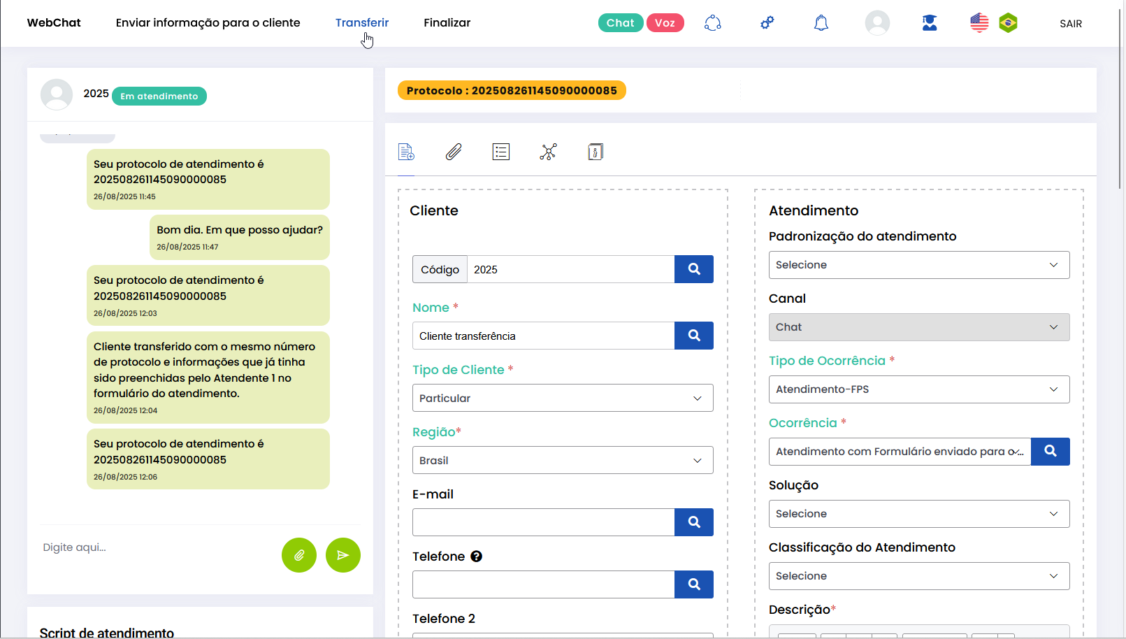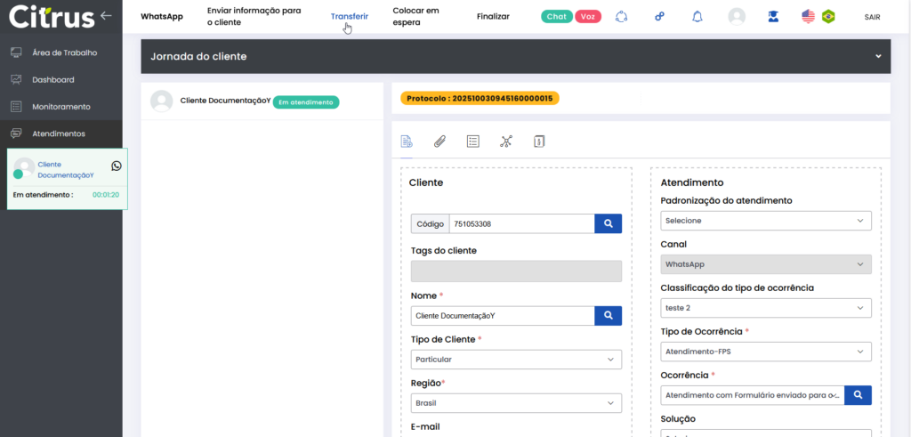 Versão 2.109.37 Leitura estimada: 5 minutos 112visualizações NOVIDADES Atendimentos: Cards de WhatsApp e WebChat já podem ser transferidos entre filas de atendimento ou entre Atendentes A transferência de atendimentos dos canais WhatsApp e WebChat pode ser feita entre filas e Atendentes no respectivo canal (WhatsApp → WhatsApp e WebChat → WebChat). O atendimento transferido manterá o número de Protocolo e todo o histórico de conversas do cliente com Atendente(s) anterior(es). Transferência de atendimento de WhatsApp. Transferência de atendimento de WebChat. Consulte todas as regras de funcionamento nos Guias Transferir Atendimento WhatsApp e Transferir Atendimento WebChat Administração: Adicionadas configurações de Pesquisas de Satisfação dos tipos CES, CSAT e NPS para o canal WhatsApp Agora é possível configurar Pesquisas de Satisfação dos tipos CES, CSAT e NPS no canal WhatsApp e aplicá-las automaticamente no pós-atendimento. O usuário com perfil Administrador pode criar pesquisas pelo menu Administração > Atendimentos > Pesquisa de Satisfação. As pesquisas podem ser personalizadas em 4 etapas: escolha da conta/fila, definição do tipo de pesquisa, customização de comentários e mensagem de agradecimento. Além disso, a configuração ainda permite Ativar e Inativar pesquisas já cadastradas. Tela para configuração de Pesquisa de Satisfação. Consulte como configurar cada tipo de pesquisa no WhatsApp pelo Guia Configurar Pesquisas de Satisfação MELHORIA Atendimentos: Adicionada validação para que logout de Atendente seja verificado por canal de atendimento A melhoria deve evitar que o sistema assuma que Atendentes associados para atender pelos canais de Voz e WhatsApp fizeram logout quando estiverem logados apenas no WhatsApp. Com o ajuste evita-se a falha de envio de mensagem de finalização automática em cards de WhatsApp em atendimento, mesmo Atendente e cliente continuando em conversa. CORREÇÕES Administração: Campo “Tempo estimado” passa a ser de preenchimento obrigatório ao cadastrar “Tipo de atividade” A obrigatoriedade de informar o “Tempo estimado” ao cadastrar um Tipo de atividade (Administração > Configurações Gerais > Tipo de atividade) evitará que ocorra falha ao salvar Atividade criada pelo menu Administração > Configurações Gerais > Atividade. A verificação é necessária porque os valores de “Tempo estimado” são considerados ao configurar o momento de “Início” e “Fim” da Atividade. Configurações Gerais de Tipo de Atividade. Confira como funcionam as Atividades e o Tipo de atividade Atendimentos | Relatórios: Informações de “início de interação” e “Duração” de atendimento estão sendo exibidas em relatório Quando uma chamada de cliente entrar em uma fila de voz sem Atendentes logados e, durante o tempo de espera desse cliente um Atendente se conectar, o card de atendimento será gerado com todas as informações. O fluxo de atendimento da ligação seguirá o comportamento esperado e, após a chamada ser finalizada, os dados que registram o momento de início e duração do atendimento serão corretamente refletidos no relatório de Atendimentos por canal de Atendimento (com consulta por “Interações com cliente”). O cenário em que o card não era carregado com todas as informações do atendimento (tela de Atendimentos) e no relatório a chamada era registrada como “sem Atendente logado” e com tempo de duração zerado foi resolvido. Marcado:AdministraçãoAdministradorAtendenteAtendimentosAtivar PesquisaCampo de Preenchimento ObrigatórioCanal de atendimentoCanal WebChatCanal WhatsAppCards de AtendimentoCards de WhatsAppCustomização de ComentáriosDefinição do Tipo de PesquisaFila de atendimentoFluxo de Atendimento VozGuia Configurar Pesquisas de SatisfaçãoLogout do AtendentePesquisa de satisfaçãoPesquisa de Satisfação CSATPesquisa de Satisfação no WhatsAppPesquisa de Satisfação Tipo CESPesquisa de Satisfação Tipo NPSRelatóriosRelease notesTela de Pesquisa de SatisfaçãoTempo de EsperaTransferênciaTransferência de FilaVersão 2.109.37